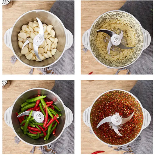 Öflugur Matvinnslumyntari fyrir Eldhúsið – Rafmagns Matarhakkari með Margnota Hnífum