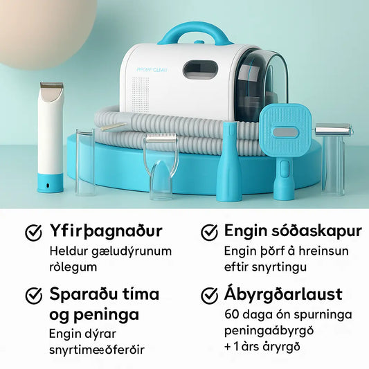 7-Í-1 Gæludýrasnyrtitæki með Ryksugu – Hljóðlaust & Óhreinindalaust fyrir Daglega Notkun