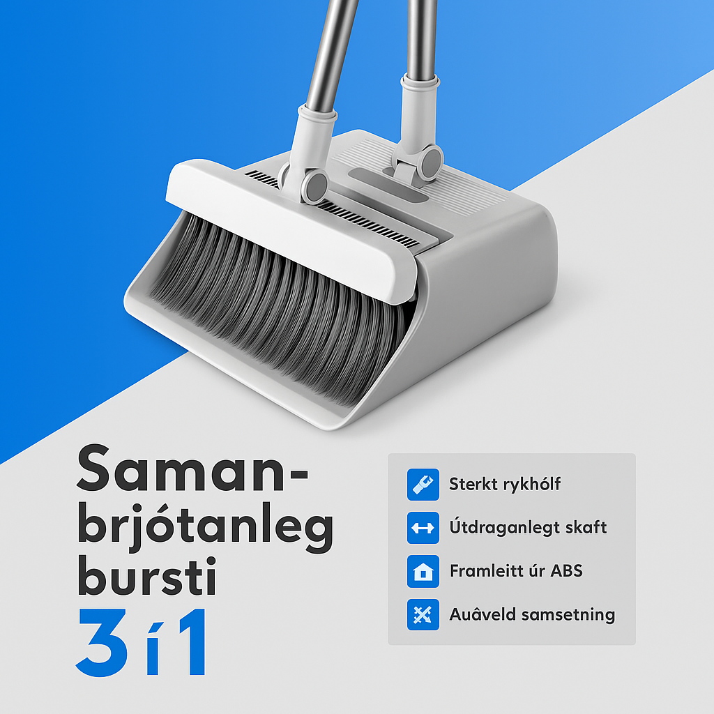 3-í-1 hönnun (sópi, bursti og skafa) |