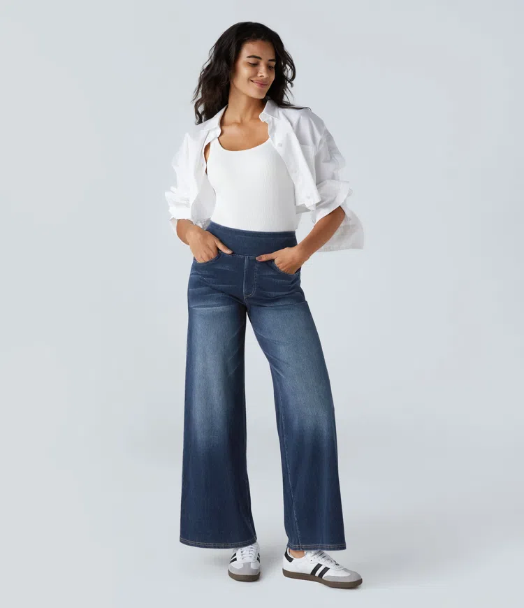 „Þægilegar Víðar Gallabuxur fyrir Konur –...