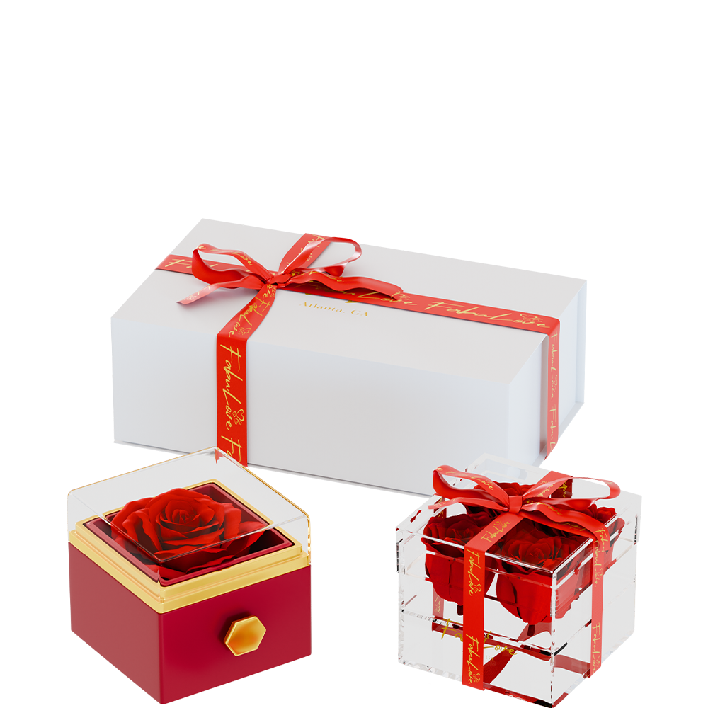 Rósabox með Læstum Hjörtum – Rómantísk...